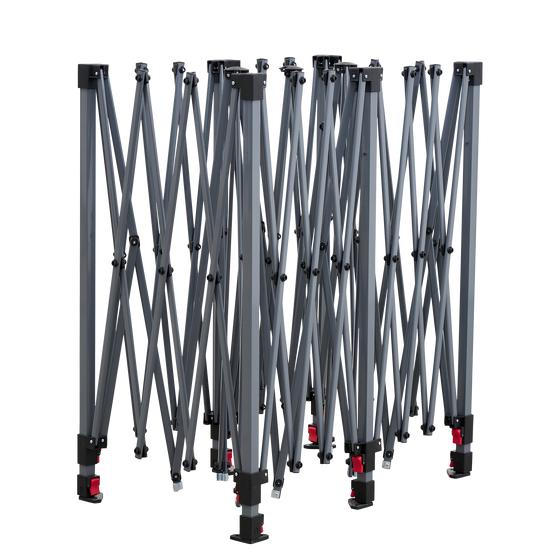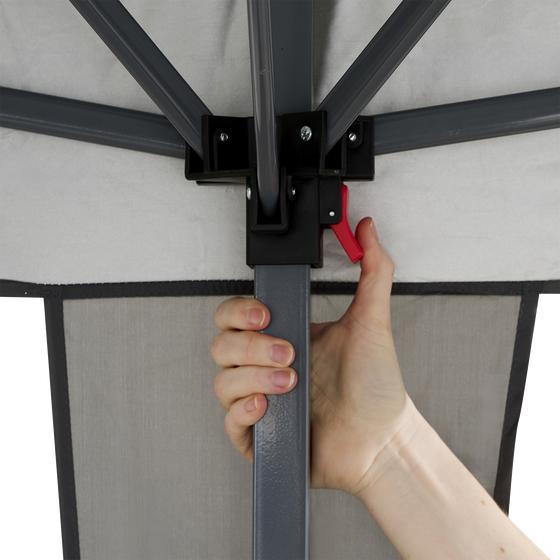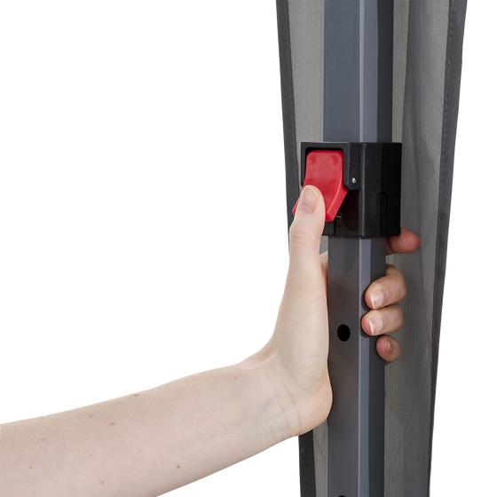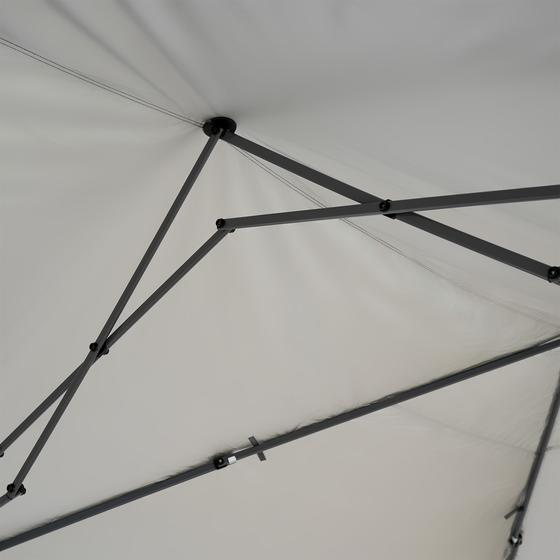 The strong frame is made of powder-coated steel and is super easy to set up. Just unfold it, click it into place with the pins, and secure it with the guy ropes and pegs. Ready for your party in no time!