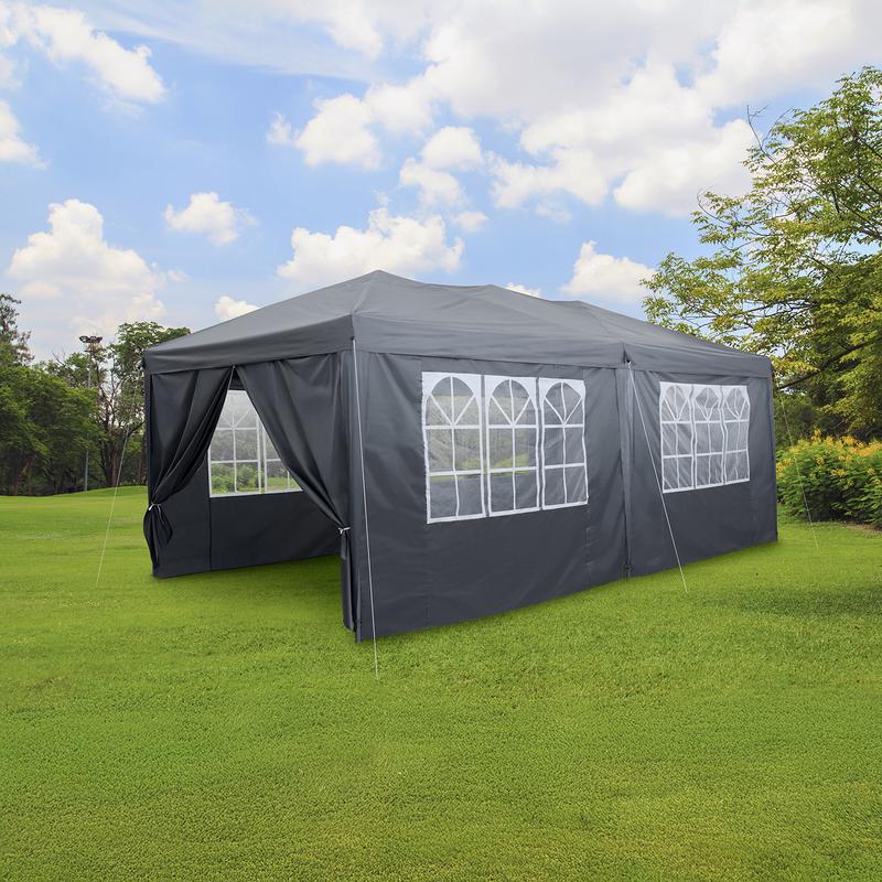 This grey party tent makes every party unforgettable. It is nice and big, with four side panels with windows and two with zip doors. Stylish and practical – perfect for birthdays, barbecues, summer weddings or any outdoor get-together.