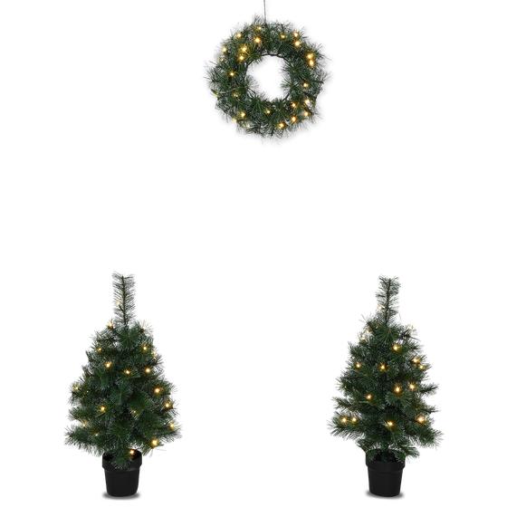 Celebrate Christmas with this beautiful Christmas decoration set, consisting of 2 illuminated artificial Christmas trees and 1 illuminated wreath. This set lets you experience Christmas in all its glory.