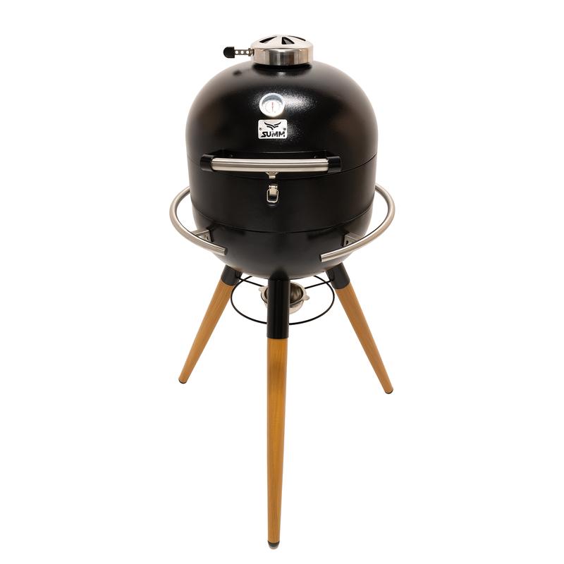 The robust steel body and stylish wood-look legs make this barbecue a real eye-catcher. A must-have for any BBQ fan!