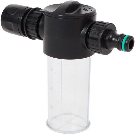 Branchez la brosse de lavage à votre tuyau d’arrosage, remplissez le distributeur de savon et c’est parti ! Vous pouvez également vous passer de savon et ne laver qu’avec de l’eau. La brosse fonctionne sur différentes surfaces. Et grâce à sa forme, vous pouvez tout atteindre ! Elle est aussi dotée d’une raclette intégrée pour que la surface nettoyée sèche plus rapidement.