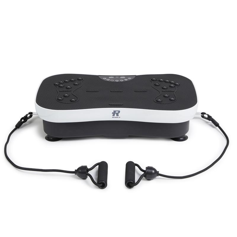 Les vibrations stimulent les muscles en continu, favorisent la circulation et offrent un entraînement complet. Idéal pour travailler le corps en douceur, tout en intensité. Les bandes de résistance incluses permettent de muscler le haut du corps.