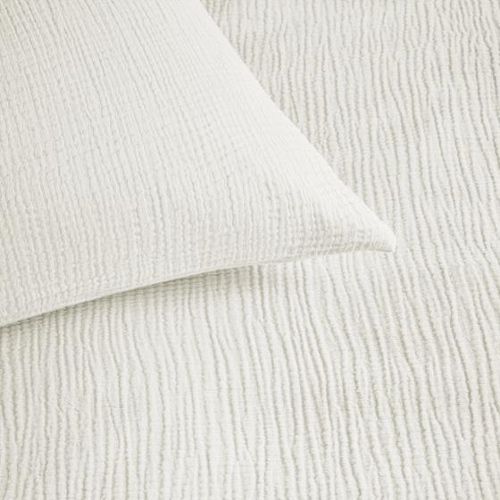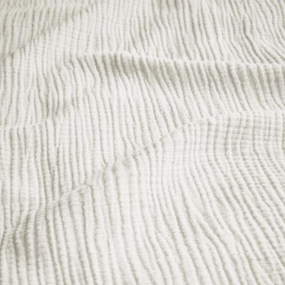 Avec sa texture gaufrée si reconnaissable, la double gaze offre un toucher délicat et un aspect naturellement froissé. Ce tissu respirant et qui absorbe l’humidité est idéal quand les températures grimpent. Le recto de la parure est en double gaze tandis que le verso est en 100 % coton, lui aussi léger et respirant.