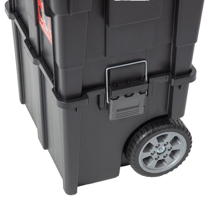Wat de gereedschapskoffer extra handig maakt zijn de stevige kunststof wielen met rubberen laag. Zo rijdt ‘ie overal soepel achter je aan. Het robuuste design, inklapbare handvat met vergrendeling en de stevige sloten maken deze gereedschapskoffer onmisbaar voor elke klus. Pak ‘m mee en ga direct aan de slag!