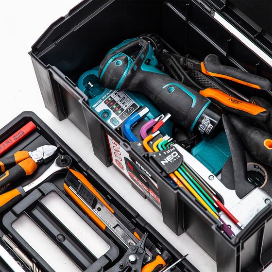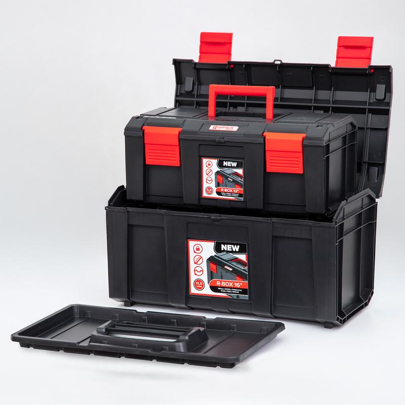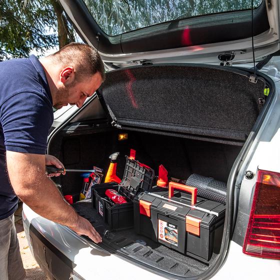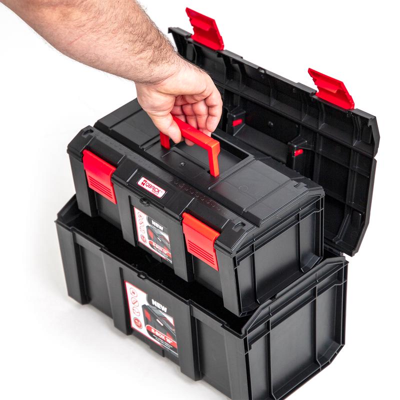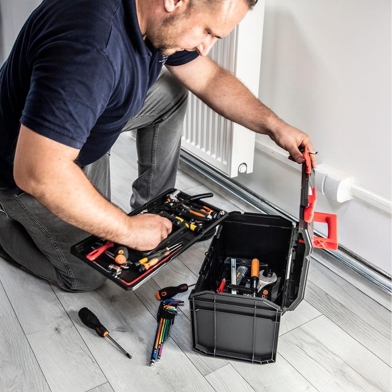 Ben jij ook zo klaar met rondslingerend gereedschap? Met de Qbrick Regular kofferset 3-delig geef je al je gereedschap netjes z’n eigen plek. De handige set bestaat uit drie koffers met een inhoud van 5,5, 11,5 en 24 liter. Dus of je nu kleine spulletjes zoals schroeven of pluggen wilt opbergen of grotere elektrische tools - het past er allemaal in!