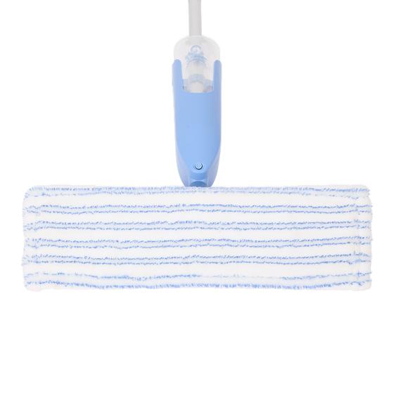 Vul het reservoir met schoonmaakmiddel en water. Met een inhoud van 500 ml heb je zeker genoeg voor een goede poetsbeurt. Knijp in de hendel op het handvat om een beetje van het sopje op de vloer te sprayen. Zo heb je nooit meer gedoe met grote emmers. Ga met de wisser over de vloer en laat hem blinkend schoon achter.
