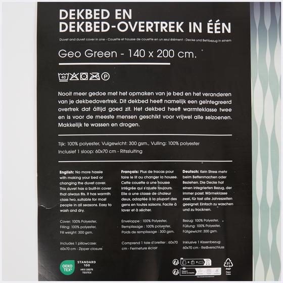Het dekbed heeft een warmteklasse 3 en is daardoor uitstekend geschikt als all-season dekbed. Omdat het een all-in-one dekbed is, bespaar je lekker veel ruimte in je kast. En je wast én droogt het supermakkelijk.