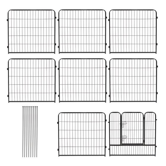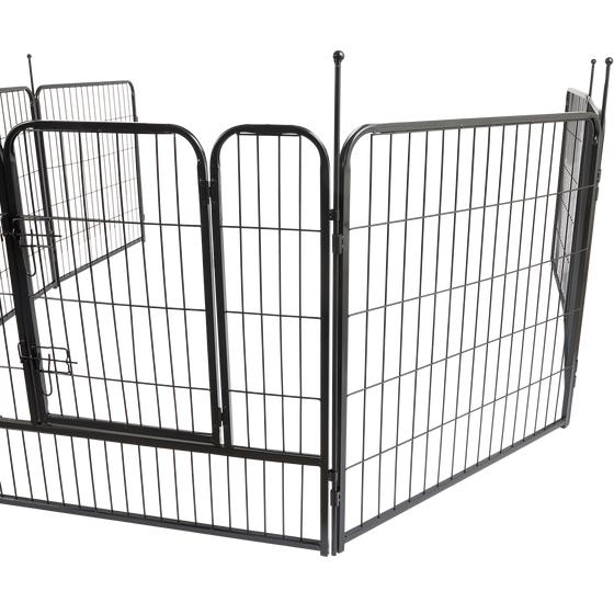 Het speelhok bestaat uit acht panelen die je zonder gereedschap aan elkaar koppelt. Er zijn verschillende opstellingen en groottes mogelijk, zodat de bench altijd en overal past. Bijvoorbeeld een zeshoek, rechthoek of een smalle opstelling. Wil je de ren juist groter maken? Dan voeg je gewoon meerdere speelhokken samen. Handig als je veel huisdieren hebt en ze lekker de ruimte wilt geven.