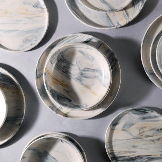De gemarmerde print en mooie kleur maken deze bordenset tijdloos en een echte klassieker. En dat betekent dat je ’m voor iedere gelegenheid uit de kast kunt halen. Of je nu een chique en romantisch diner geeft, of juist een gezellig, informeel etentje - bordenset Marena is overal geschikt voor.