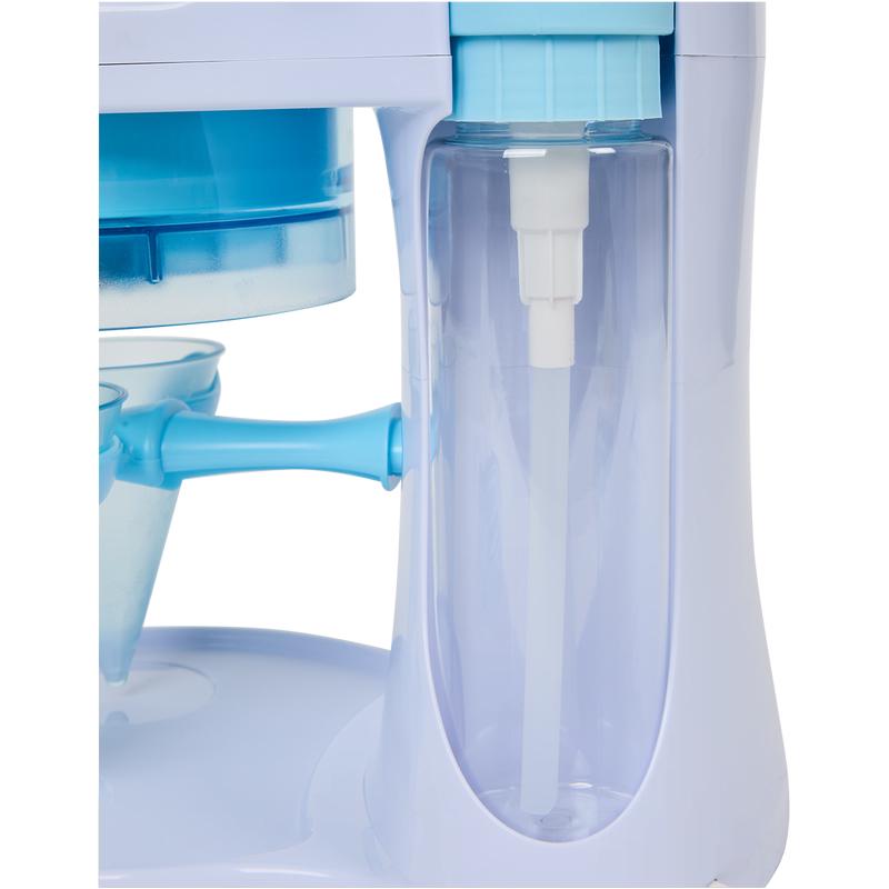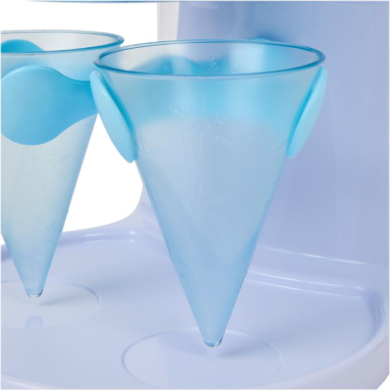 Het apparaat werkt heel makkelijk. Vul de machine met ijsblokjes, kies je favoriete siroop en zet ‘m aan. Voor een perfecte portie slush gebruik je 5 tot 7 pompjes siroop per hoorntje. Maak regenboogslushies met laagjes siroop in verschillende kleuren of gebruik bevroren blokjes vruchtensap voor een iets gezondere traktatie. Je kunt zelfs frisdrank of yoghurt gebruiken. Ga lekker experimenteren met je favoriete smaken want de combinaties zijn eindeloos. Je kunt in plaats van de meegeleverde bekers natuurlijk ook je eigen glazen of bekers gebruiken. Zo zorg je elke keer weer voor een verrassend resultaat.