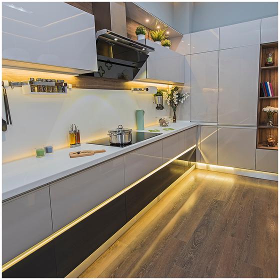 Heb jij al gelijk een plekje voor de ledstrips bedacht? Wij hebben anders nog wel een aantal ideetjes. Bevestig de strips bijvoorbeeld in de keuken, onder de wandkastjes of net boven de grond. Dat geeft een sfeervol effect. Niet alleen in de keuken, ook in de slaapkamer zijn de ledstrips superhandig. Door de strips aan de rand van het bed te hechten, creëer je een ruimtelijk gevoel. En heb je een kledingkast die net niet goed in het licht valt? Dat heb je nu zo opgelost.